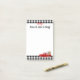 Personalised Little Red Truck Post-It Notes. Featuring the original "Little Red Truck" artwork of Rick Ellinger. Add a touch of little red truck country to your daily reminders. Perfect for the red truck collector or farm house decorator. Cooking items in the back of the truck. Accented with black and white Buffalo check at top and bottom.