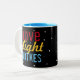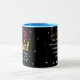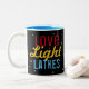 Love Light Latkes Black Hanukkah Funny Quote Two-tone mug will brighten up your family Hanukkah Party! Why not make one for each guest- and use them as place cards? This colourful, humourous saying really stands out on the black starry night background. Sure to make friends & Family smile. Includes space for your name or message. If you would like to see a variation of this design please email: bestdressedbread@gmail.com