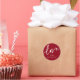 Round sticker/envelope seal with the word 'love' in a handwritten script font. The rest of the text is completely customisable - so the font style, size, colour and placement can be changed. The background colour can also be changed using Zazzle's editing tools. This design is available in different colours and on other sticker shapes/sizes in my store.