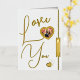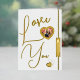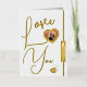 This romantic personalised Valentine's Day greeting card features a heart frame and a couple's photo that can be replaced with your photo. It also features a "Love you" message in gold foil on the front with a white background and a gold foil "forever" tag on the side. The inside of the card features a loving message and names that can be edited and replaced with your message and names for an entire personalised gift. This romantic message of love is perfect for sharing with your significant other. Happy Valentine’s Day.