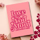 This just peachy stylish folded card says "love you mum" in trendy boho and retro typography, in shades of pink and darker rose. The perfect gift for Mother's Day or any time!