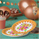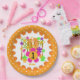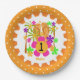 Personalised Luau 1st Birthday paper plates are colourful, fun, cheery, and a perfect addition to any luau or tropical theme birthday party celebration! Features a pair of flip flops, palm trees, flowers, the number 1 for first birthday, a border of white dots on orange, an orange decorative ring, and an area you can add a name to personalise!
