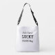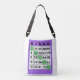 It's very roomy. The fabric is soft and flexible, and the strap is wide and adjustable to fit across the body. The printing is true to the photo.
