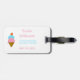 This fun personalised luggage tag for kids features a cute ice cream cone on the front with a strawberry scoop and a blueberry scoop with a cherry on top. The back of the luggage tag also features the same ice cream cone in miniature along with your name, address and phone number. Your girl will love this customised addition of this cute luggage tag to her luggage as it features some of her favourite colours -- pink and blue. Copyright Marissa Henis Designs