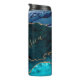 Beautiful personalised thermal tumbler features lux agate and gold vein patterns in peacock colours of blue, green, purple and turquoise.