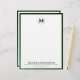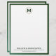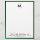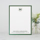 Elevate your professional image with this elegant personalised business letterhead featuring a brushed gold monogram medallion initial and classic block typography on a white background. The green leather trim adds a touch of sophistication to your correspondence. Customise the company name and contact information to make a lasting impression on clients and colleagues.