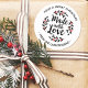 A personalised "made with love" sticker on a white background. Features a pretty berry wreath and the words "made with love" in an elegant script font. A pretty finishing touch for all of your handmade gifts. Designed for you by Blackberry Boulevard.