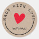 Personalised Made With Love Red Heart Kraft Classic Round Sticker