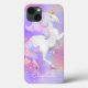 Add a special message or your name to this pink unicorn iphone 13 case.