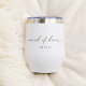 Custom wedding wine tumbler for your bridal party features "maid of honour" in elegant, classic calligraphy script typography with your maid of honour's name beneath.
