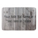 Personalised Man Cave Bathroom Rustic Bath Mat for men and women who love cabin home decor. Type in Your NAME or TEXT or Delete it. Cool wood look rustic bath mat comes in 3 sizes. Large grey bath mat with black text is shown or choose the medium or small size. We have matching and coordinating faux barn board rustic man cave bathroom accessories or we can design them for you, at no extra charge.