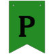 Customisable party bunting banner with template text for 16 letters or numbers; mardi gras colours - green, yellow, purple