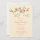 Custom bridal shower invitations. Elegant, pretty, personalised, rustic country vintage glass mason jars hanging from a tree with beautiful stylised apricot / peach, pastel green flowers, leaves and a cute bird with love heart bridal shower invitations template. Chic, stylish, blooming flowers; delicate, romantic hanging mason jars which you can personalise with the initials / monogram of the bride and groom on a pretty pale pastel peach colour background. The sophisticated, ornate, handwritten, cursive, script, orange font is fully customisable for your needs. Cute, modern, fancy, whimsical, glamourous, girly, fashionable, personalised / personalised, floral, custom invites for bridal showers to celebrate the bride to be. Contemporary, feminine, trendy, invites for spring and summer showers, but will be equally lovely for any season. Decorated on both sides. Double sided printing / printed on front and back / reverse side of these gorgeous, stunning, unique, original, country cottage garden summery invites templates. If you need any assistance customising your product please contact me through my store and I will be happy to help.
