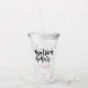 Matron of Honour acrylic tumbler with black and pink modern calligraphy lettering. Personalise the name to customise. Modern lettering designed by Joy by Jess.