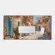 Bring the serenity of this view from a street into your workspace with this exquisite desk mat. Personalise it with a name printed on the lower right corner. This mat features a view of a street from a Mediterranean island street with its colourful doors and blinds and plants lovingly cared for by the content folk with a high-quality print from a high definition graphic. It provides a smooth and comfortable surface for your work for your laptop, keyboard and mouse. It can also transform your workbench with a stylish and elegant touch. Perfectly suited for all creators, artists, writers and anyone inspired.