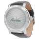 A golf ball decorates this stylish watch. Personalise this watch by changing the name. The design is from original art.