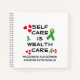 Personalised Mental Health SELF CARE Christian Notebook with CUSTOMIZABLE text for men and women who want to promote self-care and raise awareness of mental health while building their businesses. The wording reads 'SELF CARE IS WEALTH CARE' with the customisable 'WISE KINGDOM ENTREPRENEUR' underneath, where you can add your name or other text. The text is surrounded by heart clusters and the green ribbons that represent mental health awareness. This mental health notebook would make a great gift for Christian workaholics.