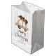 This cute gift bag has a customisable template where you can edit the greeting and change the family name to suit. The same design is on the front and the back. Printed in beautiful Boho browns and neutral colours. Personalised Merry Christmas Car With Tree Medium Gift Bag.