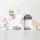 This Christmas gift wrapping paper is decorated with watercolor Christmas cookies and foliage and says Merry Christmas.