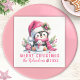 Personalised Merry Christmas Cute Penguin Pink Napkin