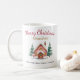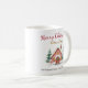 Featuring a charming watercolor winter cottage with snow-covered trees, a cheerful snowman, and elegant festive lettering, this mug can be customised with your family names — like “Love from Emma, Luke & Charlotte.”