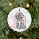 Personalised Merry Christmas Grey Kitten Pink Bow Ceramic Tree Decoration
