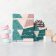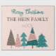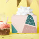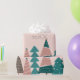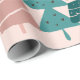 Whimsical Merry Christmas holiday gift wrap paper featuring modern script writing and simple decorated trees in the trendy Scandi style. Personalise with custom name and year text—popular pink and green colours.