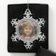 Personalise this snowflake ornament with your own photo. This design features a red and green floral border with Merry Christmas at the top and the year at the bottom. Simply choose the personalise options to the right of the picture. Makes a great keepsake!
