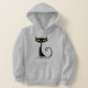 This personalised boys' hoodie design features a retro mid century modern "atomic" black cat with big yellow eyes and a curly tail.