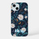 A serene floral pattern set against a deep navy background, "Midnight Garden" features delicate white blooms intertwined with finely detailed foliage in soft turquoise, orange, and muted purple hues. The intricate linework of the flowers and leaves creates a sense of depth and elegance, while the subtle inclusion of butterflies adds a touch of whimsy. The contrasting colours stand out beautifully, evoking the tranquillity and mystery of a garden at night.
