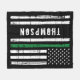 Thin Green Line perfect for all federal law enforcement officers, border patrol, game wardens, park rangers and conservation personnel, as well as the military, first responders and front line workers. Personalise with name, or family name. This thin green line blanket is perfect for retirement gifts. COPYRIGHT © 2020 Judy Burrows, Black Dog Art - All Rights Reserved. Personalised Military Flag Thin Green Line Fleece Blanket