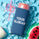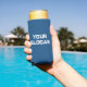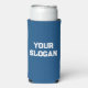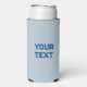 Personalised Minimalist Blue Colours Can Cooler. Two different shade of blue colours on front and on back of the can cooler. This minimalist style is a perfect choice for company merchandise, company campaign, promotional giveaway or for client gifts. Just add your company slogan, custom text, company name/logo, client names or any other texts on the front and back of the can cooler to suit your needs. You can have the same message or two different messages (front and back).