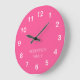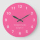 This modern Personalised Minimalist Hot Pink Wall Clock is easy to personalise by typing your choice of family name or similar wording into the personalisation template before ordering. The design features the numbers and personalisation on a simple plain "hot pink" background so that the time can easily be seen by adults and children.