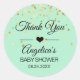 Add these cute personalised baby shower stickers / labels to your invitations and gift favours. Modern girl baby light pastel mint green with gold confetti. Colour, font, and size can be changed.