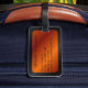 Create a personalised luggage tag with stylish black and orange design. Template text makes it easy to type your name, address, phone and other contact information.