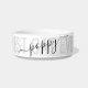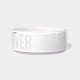 Black and white cat bowl with grey "BEST CAT EVER" and your cat's name customised in a chic and elegant calligraphy script font text overlay. Enter any personalised text you like for the background and top layer of text to create your own personalised modern and minimal and fun ceramic pet food or water bowl. See our collection of coordinating bowls and get a set!