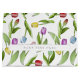 The product design features a pattern of colourful tulip flowers in purple, red, pink, blue, and yellow. This botanical illustration with personalised text makes an elegant modern and unique gift bag for her birthday, Easter, Mother’s Day, bridal shower, wedding, and more!