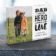 A modern Father's Day photo block. Modern typography with the words, " Dad, a son's first hero, a daughters first love." Personalise it with a photo and names. Makes a unique personalised Father's Day gift. Designed for you by Blackberry Boulevard.