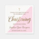 Personalise this modern napkin for your daughter's Christening. impressed guests with such a thoughtful personal touch. Pink and white with faux gold cross design.