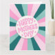 Treat your mum this Mother's Day with this retro sunburst Personalised Modern Happy Mothers Day Typography. The perfect way to show just how much you care! Our card is made with the finest quality paper, with a vibrant green mint and pink retro sunburst with a juicy lettering typography inside.  Our customisable message feature is sure to let your Mum know just how much you care. So, jump start your Mother's Day celebrations and give your special Mum something to love and cherish. Great for the best mum ever!