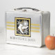 The design features a pair of ice skates over a snowflake crest with faux gold glitter, black, and white background. This elegant winter sports design serves as a cool modern and unique lunch box with personalised text for figure skater, ice dancer, speed skater, and more!