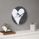 The product design features two white doves roost together and look up towards a light blue heart. White doves are symbols of love, luck, peace, and prosperity. This simple birds illustration makes a cute modern and unique round clock with personalised text - Gift idea for wedding, bridal shower, anniversary, or any other romantic occasions.