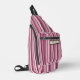 Stylish sling bag featuring modern pink mauve vertical stripes. Customise for a trendy, hands-free everyday carry option.