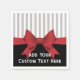 This product design features an illustrated red ribbon on a black background and grey stripes. With its unique classic graphics, It makes elegant chic paper napkins with personalised text and a favourite stripe colour for birthdays, wedding, Christmas parties, or any other special events.