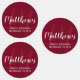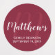 feature family name in white modern script font style and monogram in light burgundy red modern script font style as background