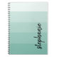 This trendy modern design features five colour block stripes in gradient tints from light to medium aqua. Personalise it with your name in vertical black signature handwriting script.