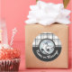 The design features a pair of ice skates over a snowflake crest and an off-white tartan pattern background. This elegant winter sports design serves as cute modern and unique round stickers with personalised text.