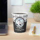 The design features a pair of ice skates over a snowflake crest and an off-white tartan pattern background. This elegant winter sports design serves as cute modern and unique paper cups with personalised text for ice skating | figure skating theme birthday, Christmas, event party, or any other special occasions.