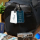 Dark Blue colour Luggage Tag with typography "Not all those who wander are lost" and Custom Name option on back side of the tag.