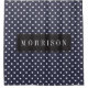 Modern crisp white medium sized polka dots pattern with customisable background colour and your choice of personalised text framed in decorative black rectangle! Goes with many different accompanying decorations!